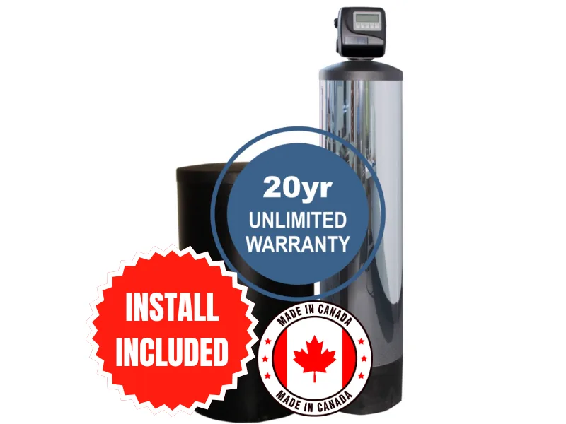The Premium Series Water Softener offers top efficiency with 80% less salt use, on-demand regeneration, and a modern design that minimizes water waste. Featuring self-diagnostics, high-flow performance, and a 20-year unlimited warranty for lasting reliability.